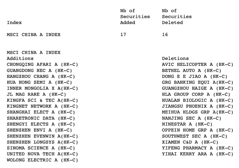 MSCI中國A股在岸指數(shù)調(diào)整成分股 來自MSCI網(wǎng)站