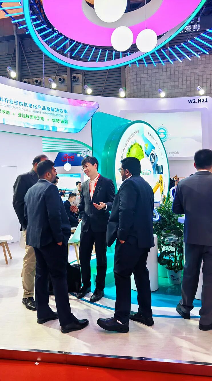 展會(huì)期間,利安隆展臺(tái)吸引了大量專業(yè)觀眾駐足交流。不少客戶對(duì)利安隆推出的水性涂料抗老化解決方案表現(xiàn)出濃厚興趣,紛紛駐足咨詢,F(xiàn)場(chǎng)技術(shù)人員以專業(yè)的知識(shí)、熱情的態(tài)度與到訪觀眾展開(kāi)了深入的技術(shù)探討,共同探索涂料抗老化技術(shù)的新方向。