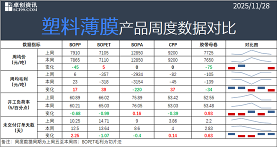 毛利:塑料薄膜各產(chǎn)品周均毛利抬升與下滑均有