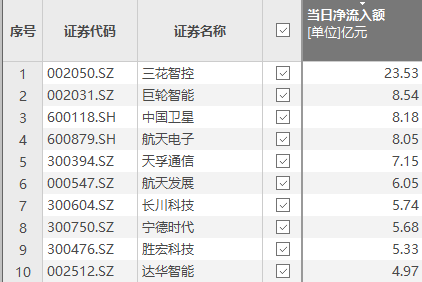 上證報中國證券網(wǎng)訊(記者 費天元)數(shù)據(jù)顯示,12月4日,資金凈流入額排名前十的個股依次是三花智控(002050)、巨輪智能(002031)、中國衛(wèi)星(600118)、航天電子(600879)、天孚通信(300394)、航天發(fā)展(000547)、長川科技(300604)、寧德時代(300750)、勝宏科技(300476)、達華智能(002512)。其中,三花智控、巨輪智能等均屬于機器人概念。