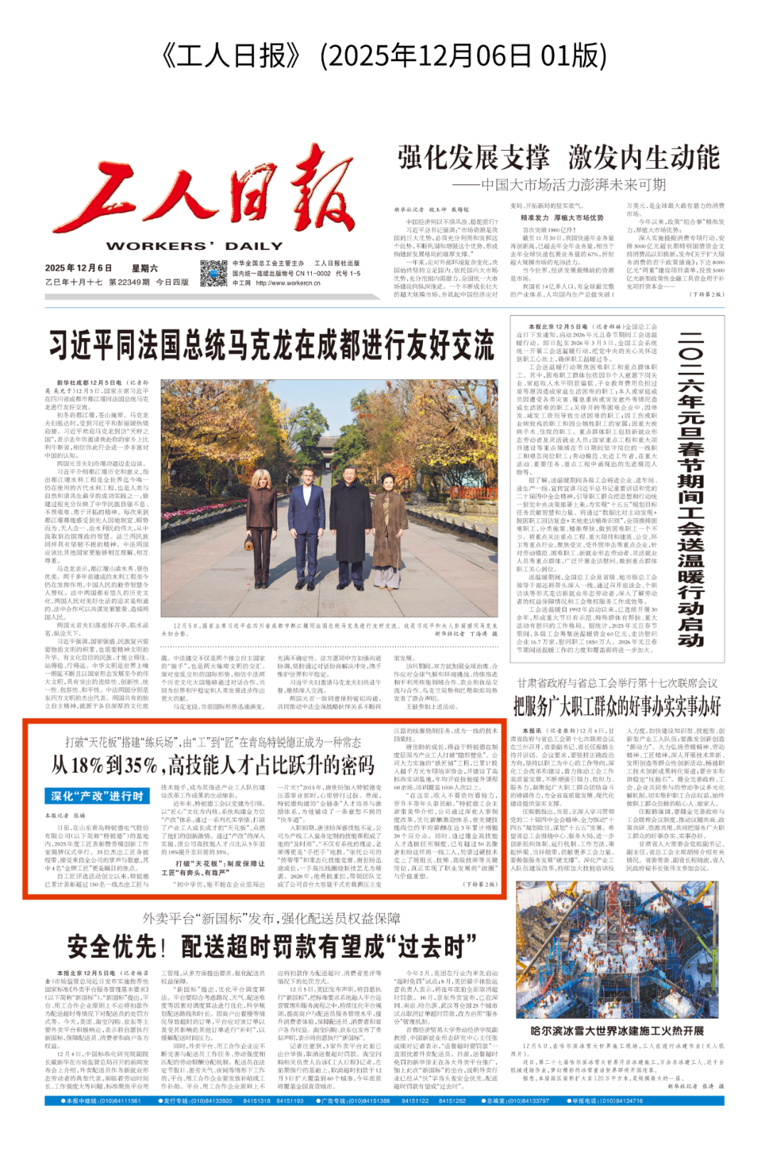 今日,青島特銳德(300001)電氣股份有限公司在產(chǎn)業(yè)工人隊伍建設改革方面的創(chuàng)新實踐與突出成效,榮登《工人日報》頭版,獲得國家級媒體的高度關注與權威推介。這標志著特銳德在深化產(chǎn)改、賦能產(chǎn)業(yè)工人全面發(fā)展方面的系統(tǒng)性工作,贏得了社會各界的高度認可。