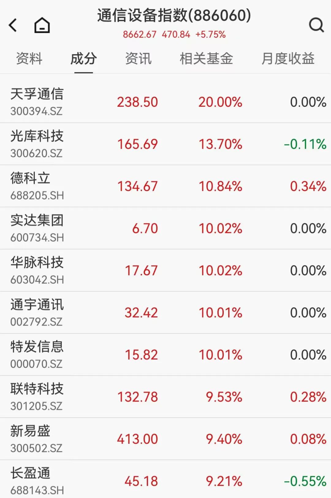 算力硬件概念爆發(fā)現(xiàn)漲停潮,天孚通信(300394)20cm漲停創(chuàng)新高。